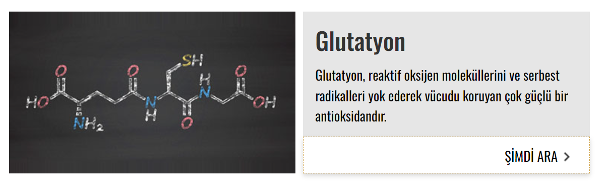 Glutatyon, reaktif oksijen moleküllerini ve serbest radikalleri yok ederek vücudu koruyan çok güçlü bir antioksidandır. Doğal olarak tüm vücutta üretilen, yoğun bir şekilde karaciğerde ve beyin hücrelerinde etki gösteren bir molekül olan glutatyonun üretimi, kötü besleme, alkol, ilaçlar ve toksik maddelerden dolayı azalmaktadır. Bu yüzden dışarıdan alınması gerekmektedir. Laboratuvarda özel yöntemlerle hazırlanan bir biyoteknoloji ürünü olan Glutatyon, damar yoluyla uygulanan bir destek tedavi sağlar.